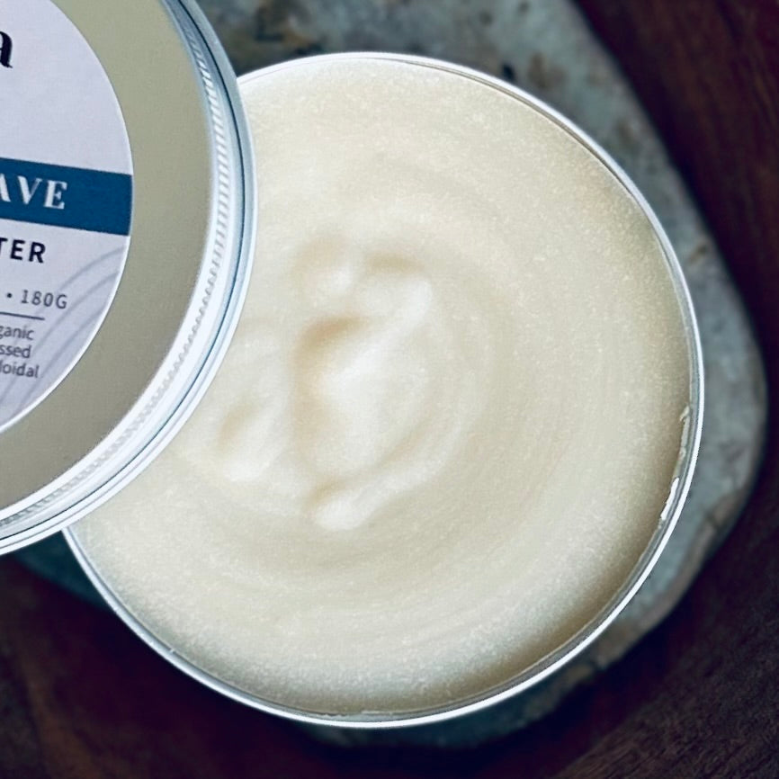 Handmade with organic shea, cocoa butter, and cold-pressed olive oil, this bar builds a dense, creamy lather that softens the beard and cushions the skin, helping the razor glide effortlessly while you shave.