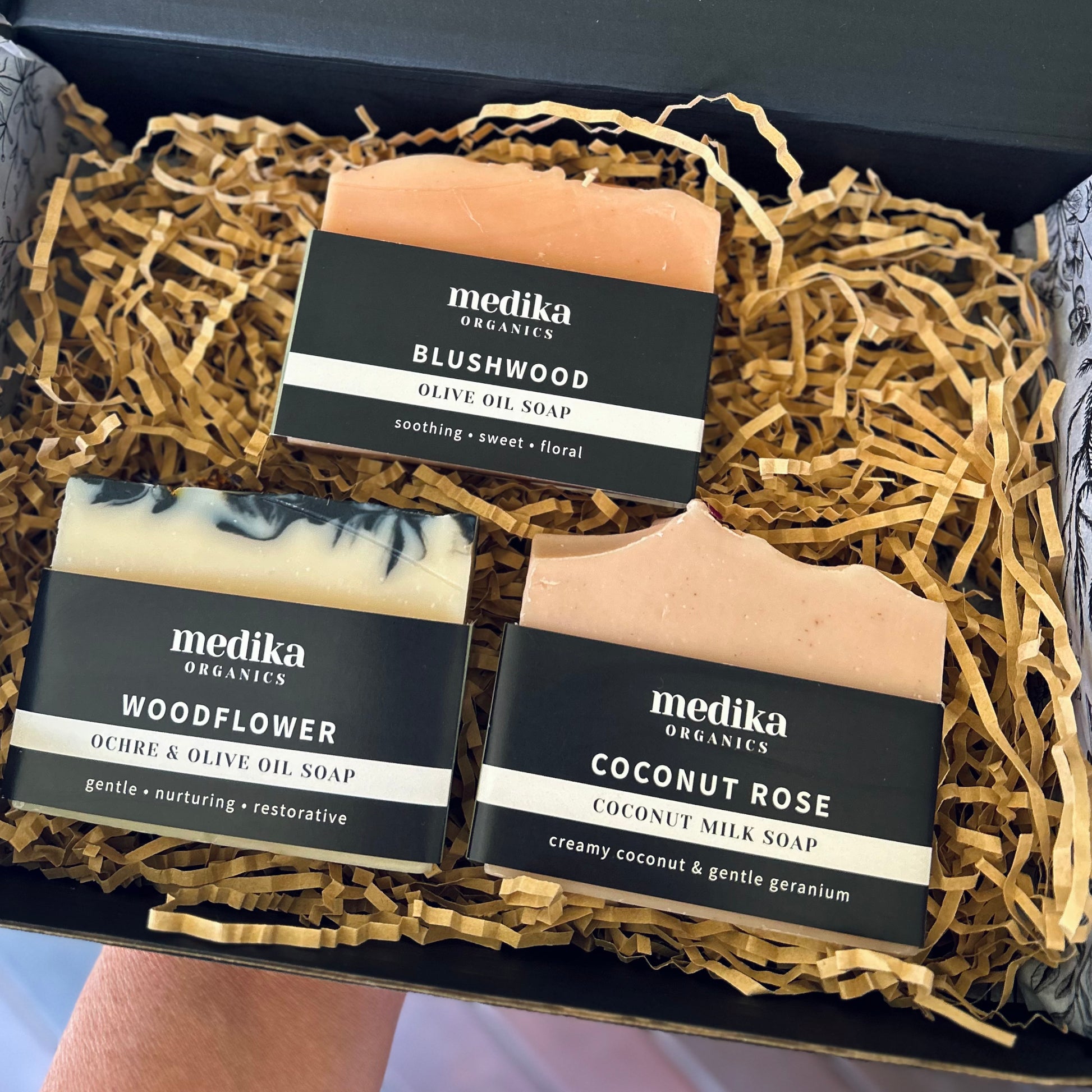 Together, these three soaps create a delicate, sensory collection — varied in scent, color, and feel, yet united by the same 100% natural, chemical-free philosophy. This bundle invites you to slow down, indulge in a mindful ritual, and let the gentle aromas of flowers transform your daily cleanse.
